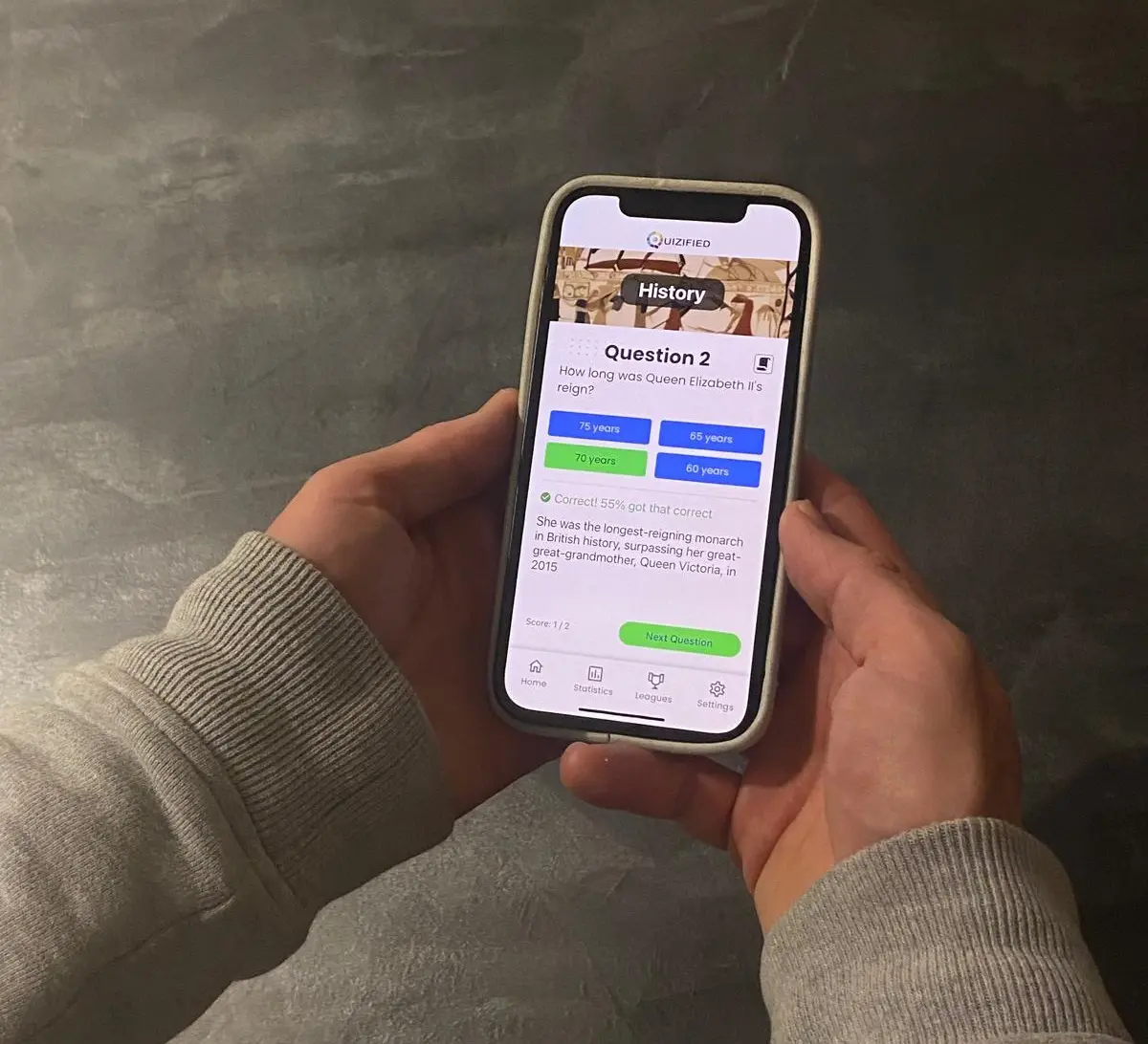 When Nick told his ex-colleague David of his predicament he was quick to point out a solution. ‘Why don’t we create an app ourselves?’. And thus Quizified was born. The premise? A daily general knowledge quiz which is easy to play, informative, with questions of varying levels to suit all ages, and created by humans. It covers a wide range of subjects from music to current affairs and also provides facts about each answer with an emphasis on learning a little as you play each day. So why not start getting your daily dose of trivia…